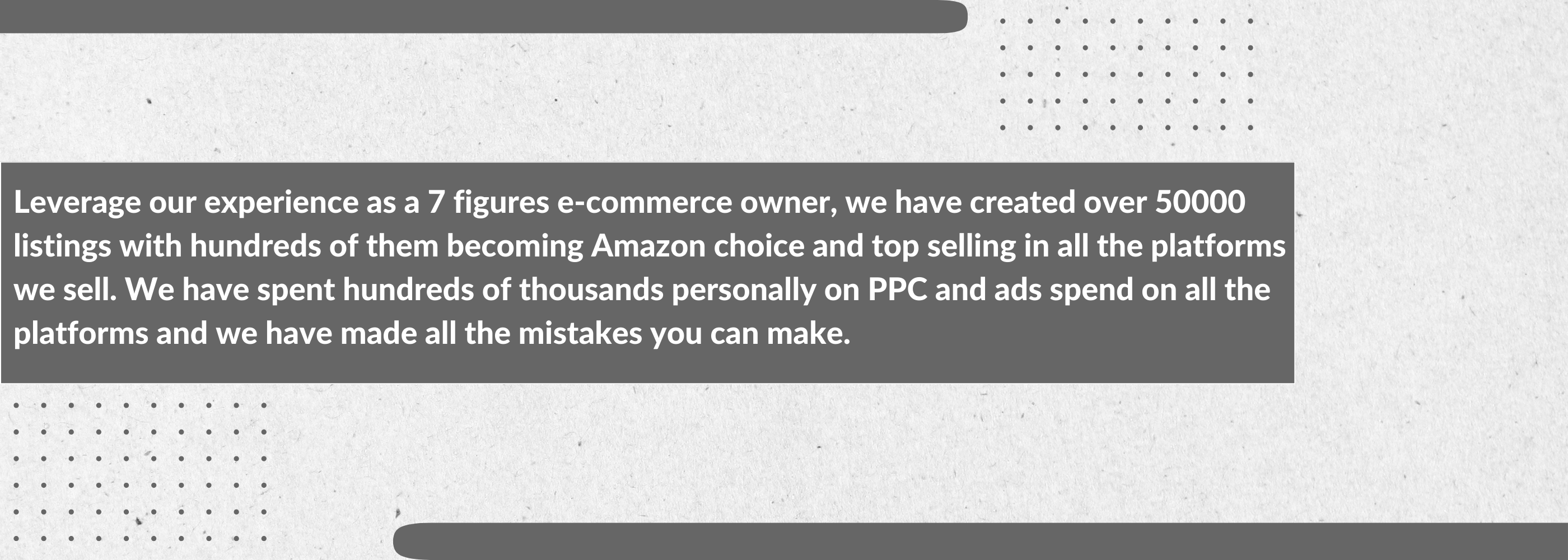 The services we offer is something we do for our businesses daily, we are a 7 figures seller on multiple platforms , this is our bread and butter and this is what we do . We want to partner up with you and increase your sales and profits the right way . our big advantage is that we are ecommerce sellers like you and we understand exactly is needed and what works for your business . Our strategy is to not overspend on ads but rather make sure that for every penny spend on PPc and ads we get the maximum amount of sales