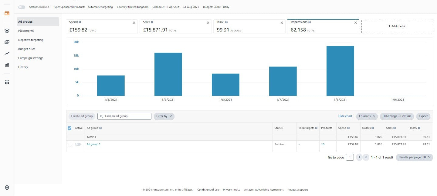 Generating £15,781.91 in sales by allocating only £159.82 to a PPC campaign for 10 products